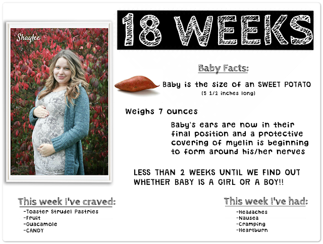 So, here I am at 18 Weeks! Only new things this week is that I have felt him/her move a lot, and also on Monday, whilst in Buffalo, I tripped over a baby gate and landed on my head. Ouchie. I'll show you in the next vlog. I wasn't able to get a vlog made this week. Ever since we got back I've been running around!